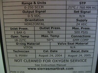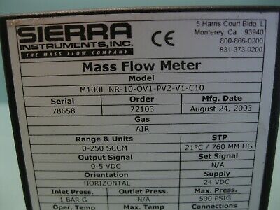 Sierra M100L Smart-Trak Mass Flow Controller 0-250 SCCM Air F19 (2941) quantity