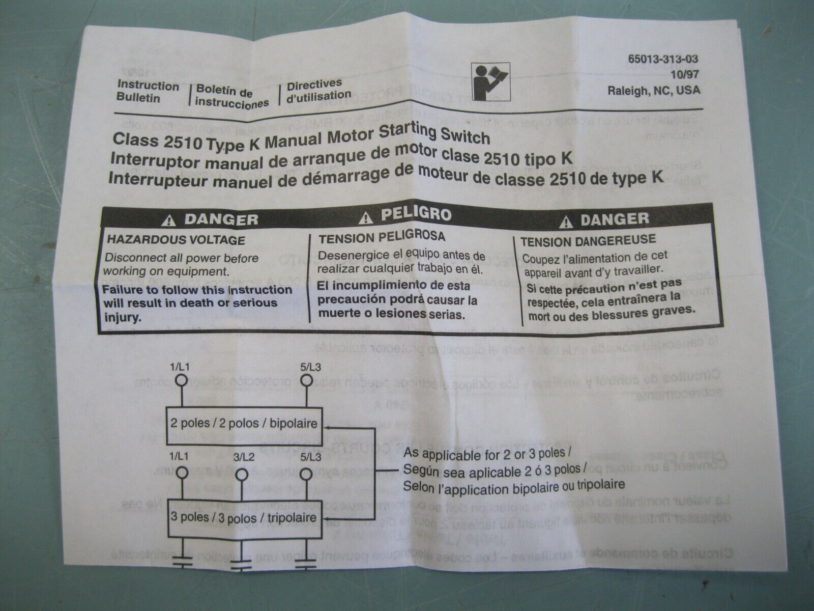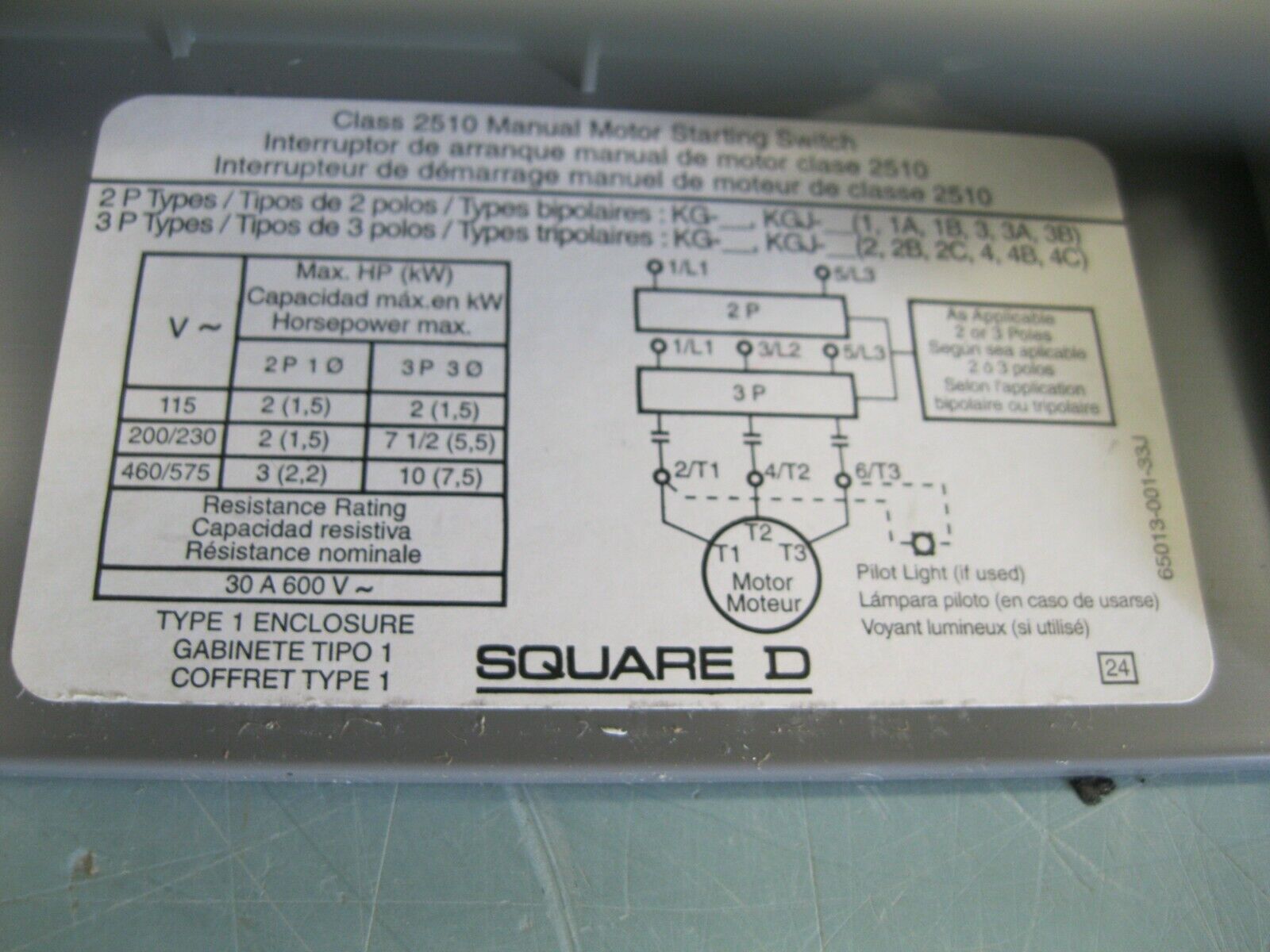 Square D 2510KG1AG Type K Manual Motor Starting Switch NEW C13