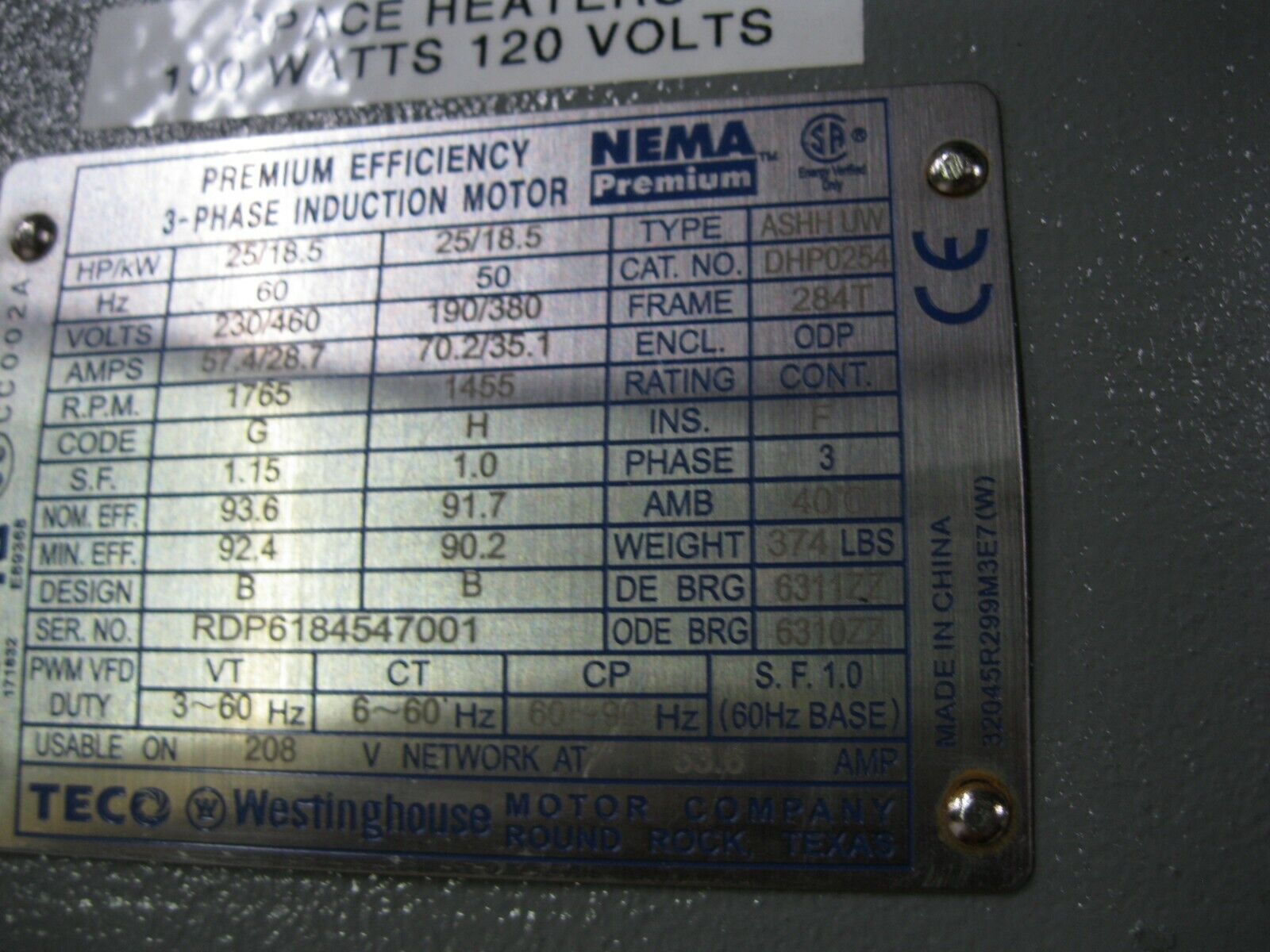 Teco Westinghouse DHP0254 NEMA Premium 25 HP Induction Motor NEW Z8 (3000)