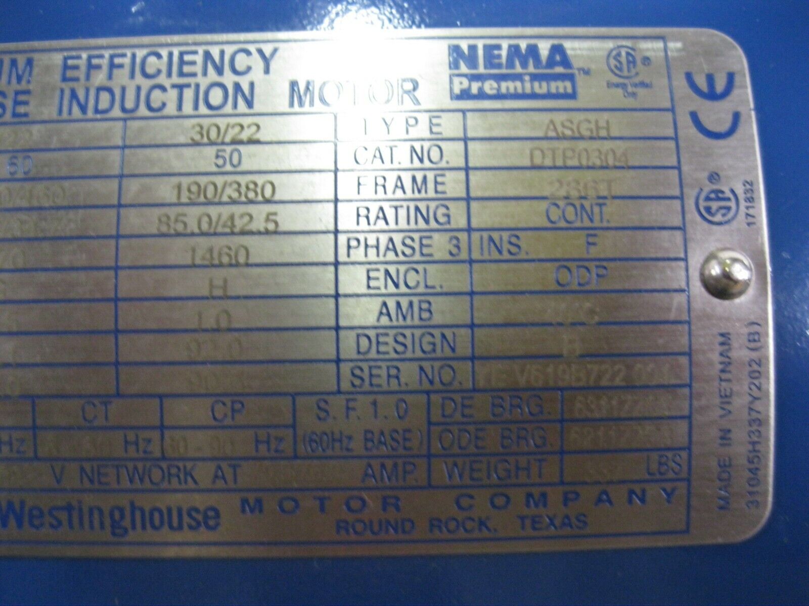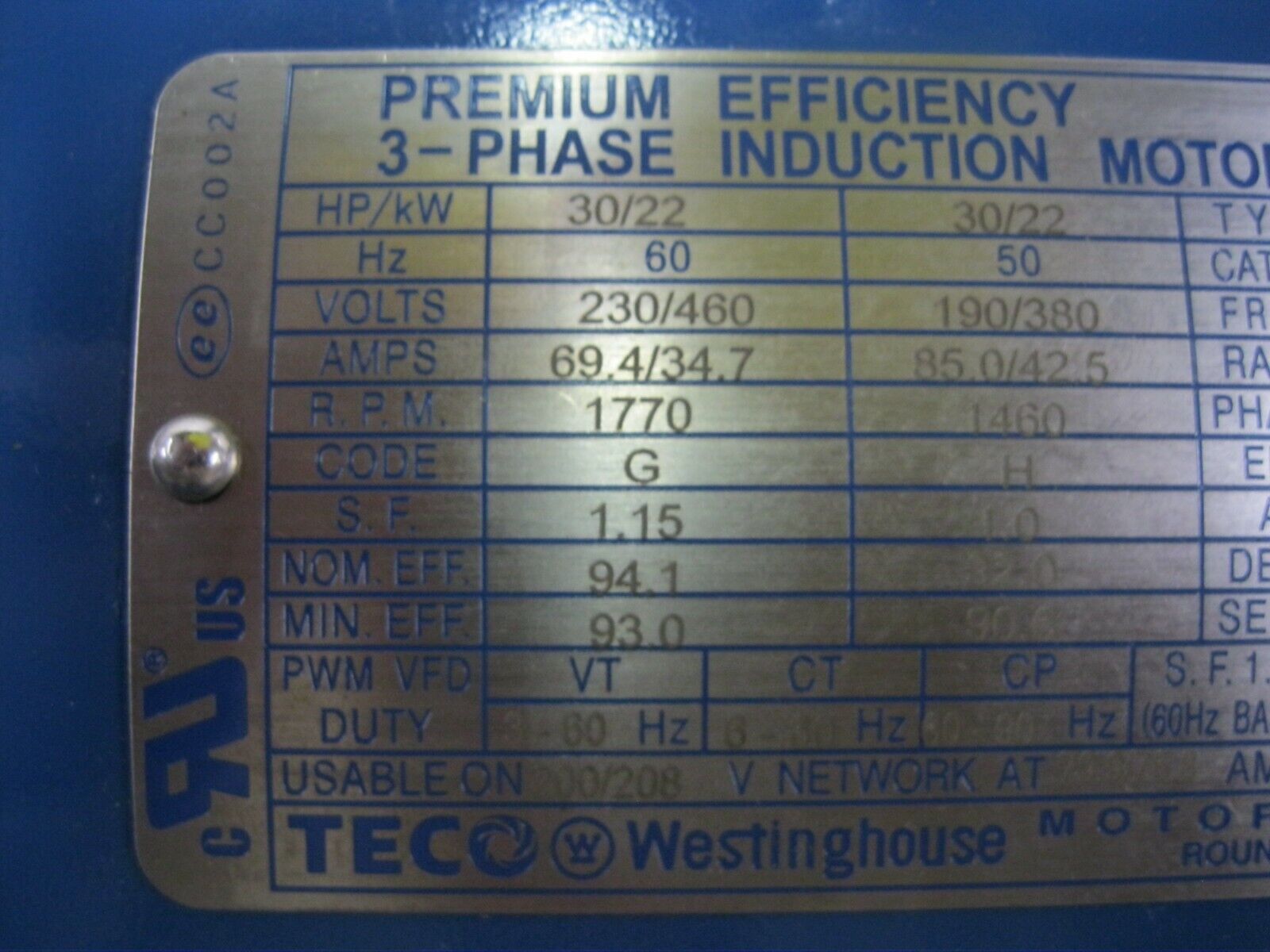 Teco Westinghouse DTP0304 NEMA Premium 30 HP Induction Motor NEW Z51 (2996) quantity