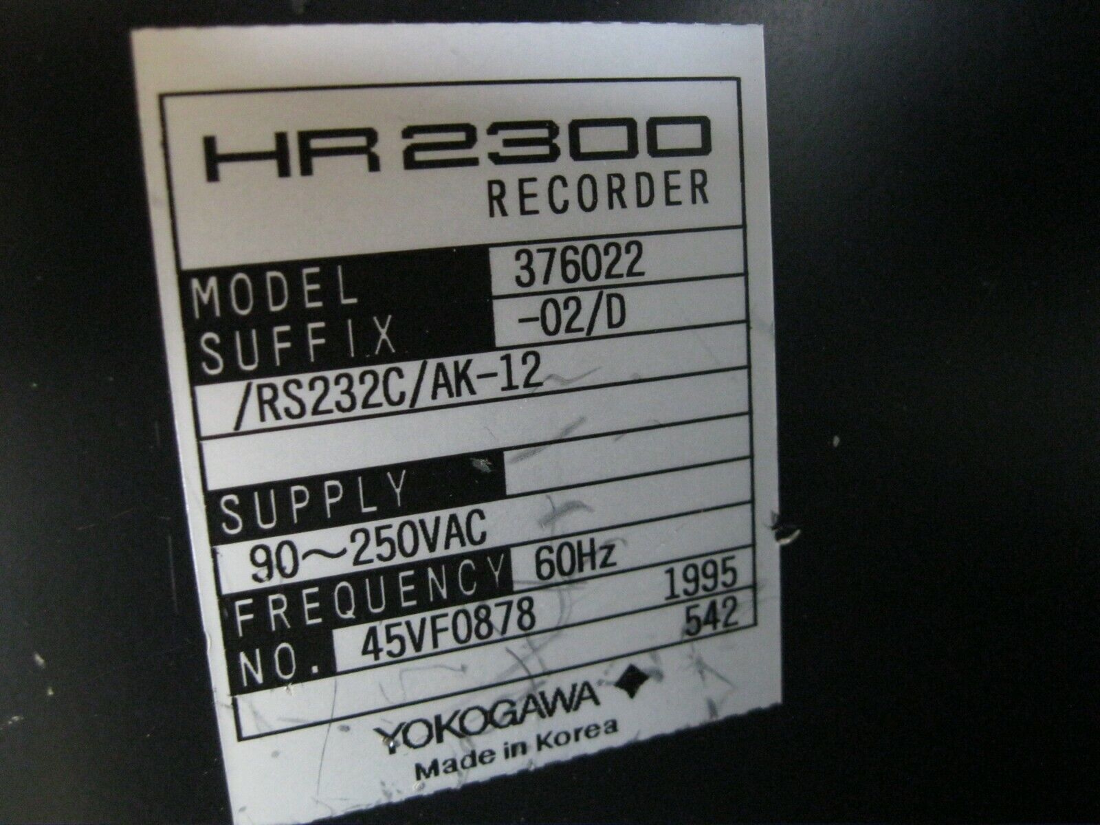 Yokogawa HR2300 Model 376022 Hybrid Chart Recorder H9 (2837)
