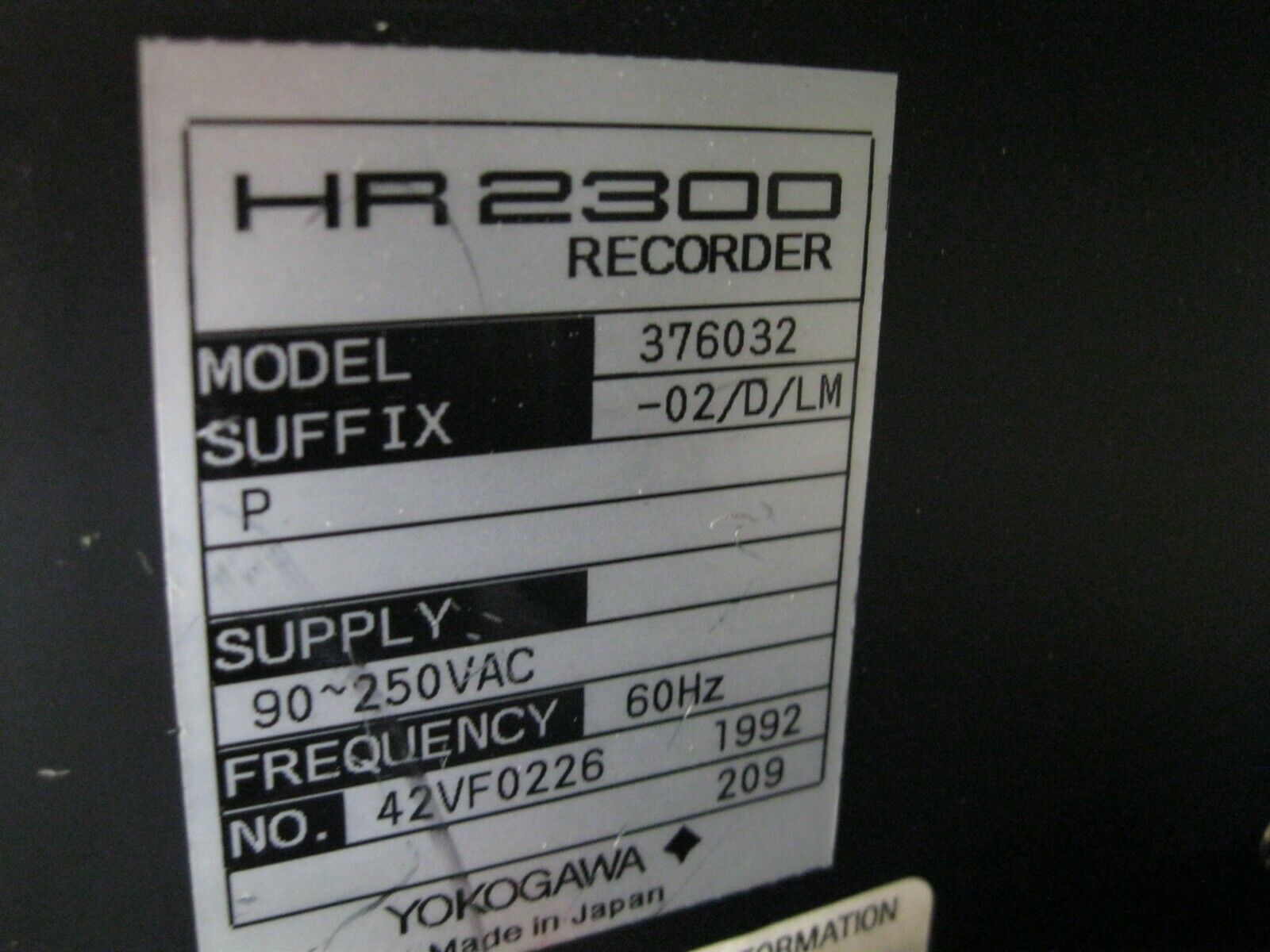 Yokogawa HR2300 Model 376032 Hybrid Chart Recorder C7 (2837) quantity