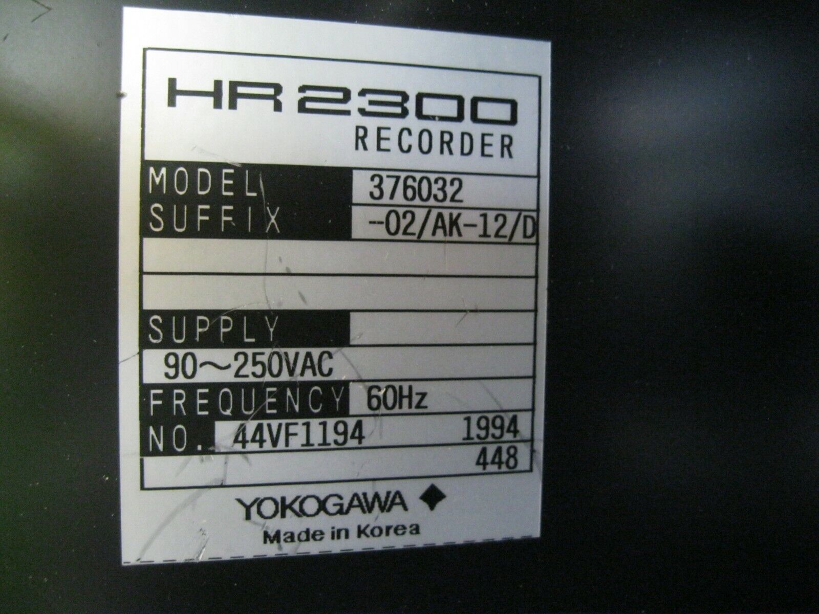 Yokogawa HR2300 Model 376032 Hybrid Chart Recorder H8 (2837)